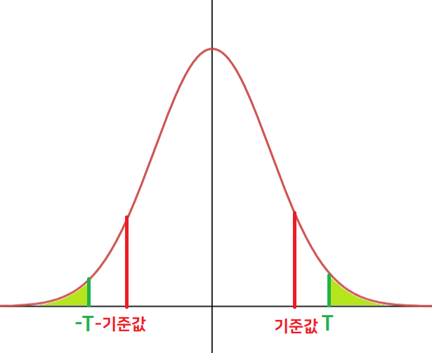 p-value가 유의 수준보다 작으면, 즉 검정 통계량이 기각역 안에 들어왔을 때, 귀무 가설을 기각한다.