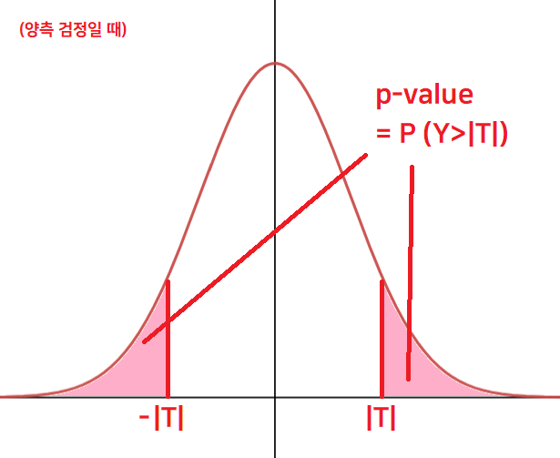 $$ p\text{-}value = P\left(Y > \left|T\right| \right) $$
