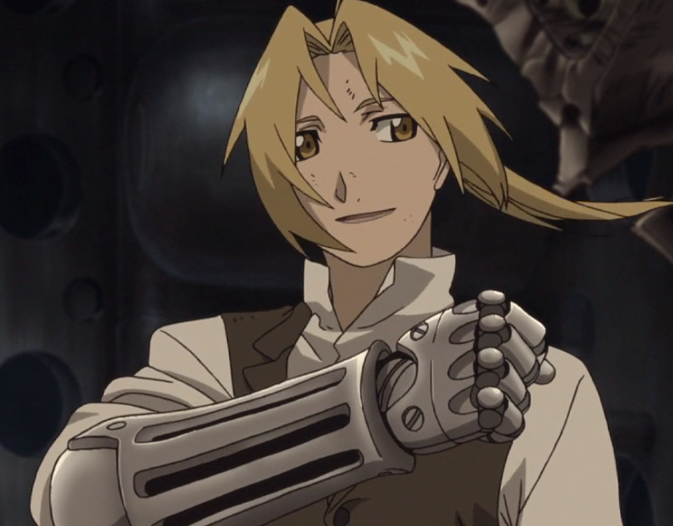 놀랍게도머스탱이 차애였다면 에드는 최애... 일단 주인공이라서 분량도 많은데다 성격도 시원시원하니 마음에 들었고 무엇보다 잘생김.ㅋㅋㅋ 브라더후드의 작화보다 여기 작화가 엘릭이 더 수려하게 그려졌다는 평이 많아서 신강철 정주행 할 때 걱정이긴 한데... 뭐 작품 보는데 크게 영향은 없겠지. 쨌든 보통 소년 만화의 주인공들은 잘 생기기보단 개성 있는 경우가 많은데, 에드워드의 경우에는 개성도 있고 (일단 한쪽 팔다리가 강철인 것부터..ㅋㅋ) 잘 생긴, 두 마리 토끼를 다 잡았다. 약간 진격거의 에렌상... (뭐 이 작품이 먼저 나왔으니 에렌이 에드상이긴 함) 둘이 얼굴이 그렇게 닮은 구석은 없는 것 같은데 외면적으로 이미지가 비슷하다. (개인적인 생각임)뭐 얼굴도 얼굴이지만 에드워드가 가장 마음에 든 이유는, 보통의 주인공이 가지는, 권선징악의 클리셰를 그대로 따르는 일반적인 선의 행동만을 좇는 성격이 아니기 때문이다. 내가 위에서 에드의 성격이 시원시원하다고 한 이유가 이것이다. 가끔 절대선을 띠는 주인공들은 그것을 좇느라 보는 독자/시청자들까지 답답하게끔 이야기를 전개시켜가는 경우가 한두 번이 아니다. (특히 주인공보다는 히로인에서 그런 경향이 짙다.) 하지만 에드워드의 경우에는 그 나이답게 이상적이면서도, 그 나이답지 않게 현실적이다. 그 현실적인 부분 때문에 이야기에 답답한 부분이 거의 없다. 첫 화에서는 로제를 보고 직접 행동으로 실행하지 않냐며 타박하는 행동이나, 에드워드의 팔다리를 가진 호문클루스(이름이 기억 안 남...)를 다짜고짜 힘으로 제압하며 추궁하는 모습, 어머니와 똑같은 모습을 한 슬로스를 보고도 흔들리지 않았던 모습 등. 특히 슬로스를 해치우는 장면은 에드워드의 정신력에 감탄하기까지 했다. 그전에 알이 슬로스의 유해를 창문에 던져버릴 정도로 흔들렸던 모습과 대비가 되어서 더더욱 그랬다. 음.... 나라면 정말 못했을 것 같다. 엄마의 무덤에서 유해를 파내고, 엄마와 똑같은 모습의 호문클루스를 해치운다는 건.... 그만큼 에드워드가 힘든 일을 겪으면서 '쟤는 가짜야.' 하는 확신을 스스로에게 새길 수 있을 만큼 성장했기 때문이겠지.